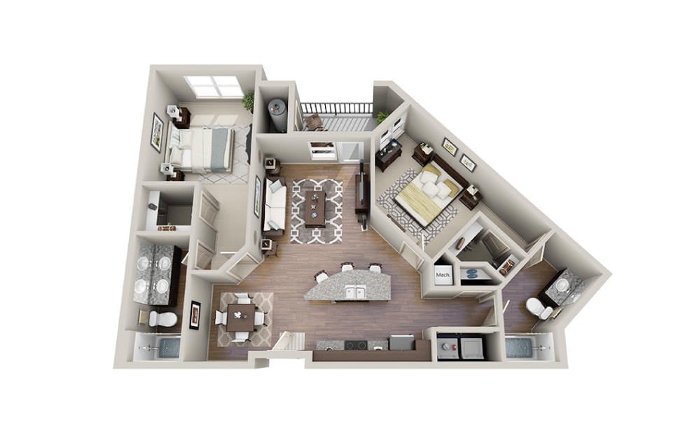 宽敞的2卧/2卫公寓,位于南方公园中心