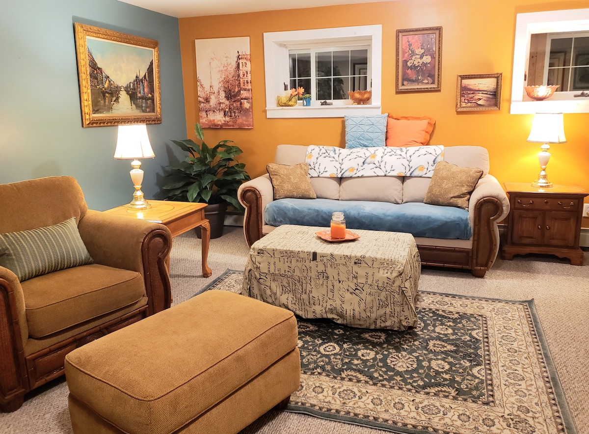 We are located in a secluded rural wooded setting centrally located between Bucknell University in Lewisburg and Susquehanna University in Selinsgrove. Offering a 1-bedroom apartment/in-law suite attached to our home with a private entrance. The suite is a spacious 75 sq. ft. with enough space for a small-family or a couple. Sleeping accommodations include a queen bed and a pull out sofa . Most comfortable for a couple or 2 adults and 2 children.