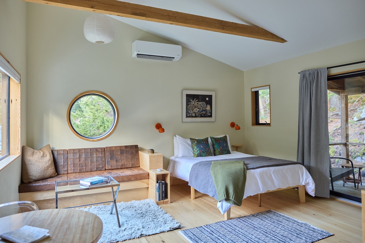Stella is a cabin-style, pet-friendly studio apartment on 100 acres of wooded property. Enjoy the property's amenities (trails, kayaking, canoeing, axe throwing, wood-fired pizza oven) and return to your comfortable space with a hot tub, power, heat, and plumbing! Stella is located at the start of the land, above our storage building, has plenty of parking and can be reached with 2wd vehicles. This is a new space, exterior is unfinished. The hot tub is an Aqualiving 3 person lounge!