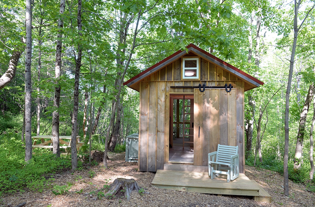 Immerse yourself in our forest and serene pond. Quiet 40-acre commune consists of two tiny house cabins + barn on private pond. Book one of the simple yet elegant cabins/barn for more guests. Modern, off-grid, solar-powered retreat. Two solid glass walls to bring you closer to nature while staying in our simple yet elegant tiny house with all comforts of home. 5 min walk to shared fire pits, kayaks, pond & seasonal picnic shelter. AWD SUV or truck required. Off-grid, so no A/C. Pet fee $89.