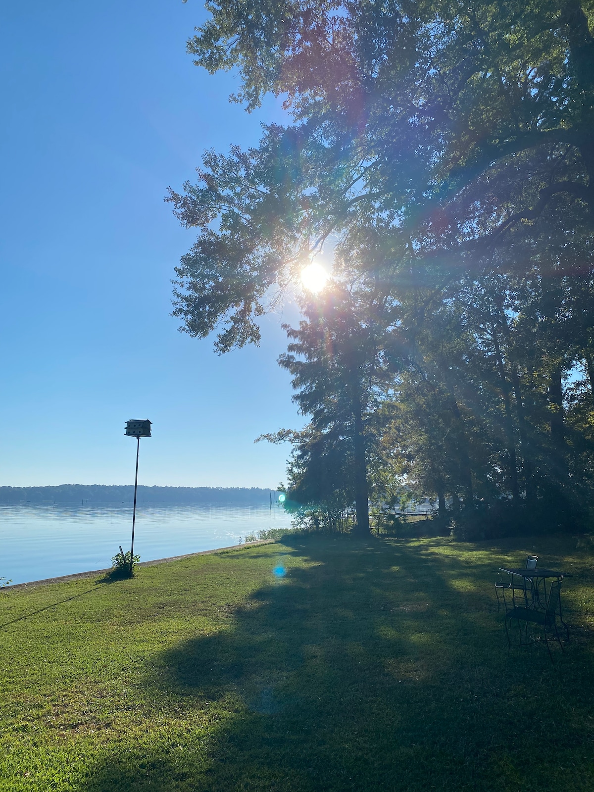 Holly Harbor is 1.5 acre pennisula lot on beautiful Lake D'Arbonne. The rustic cottage "lake-themed" interior family home boasts a large picture window facing the sunrise and a large back deck perfect for outdoor grilling or just bird watching from the porch swing. A large open dock to the bay is ideal for fishing or swimming or canoeing/kayaking (provided). The cove side offers a boat house with lift that is available to guests who own boats. Sunrise at Holly Harbor is truly majestic.