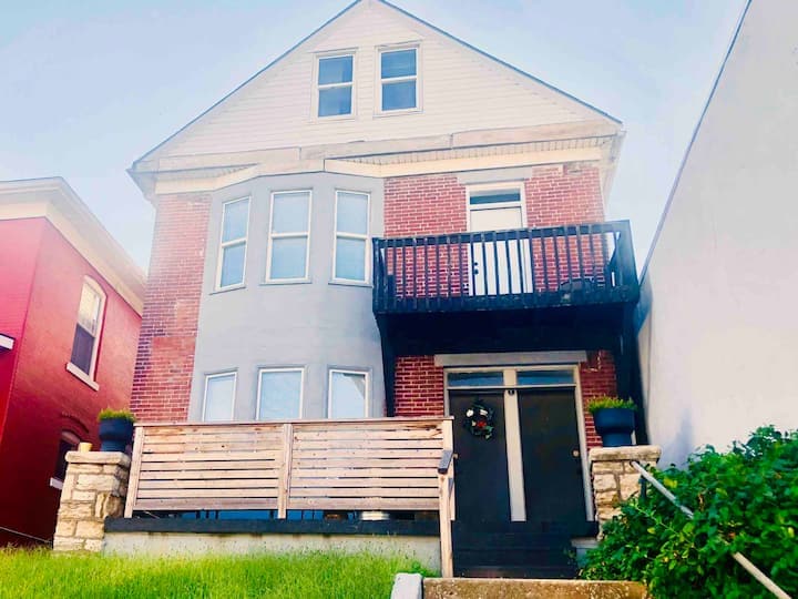 Live the true Kansas-Citian lifestyle during your stay at this sparkling clean, private, and completely renovated 120-year-old brick beauty! Gorgeous hardwood floors, exposed brick walls, 11' exposed wood ceilings, 2 private decks, large gourmet kitchen, luxurious full bathroom, spacious master bedroom, and cozy 2nd bedroom. Located in the historic Westside of Kansas City; Walk seconds to neighborhood hot spots & minutes to KC's highlights: Crossroads, Street Car, Downtown & Convention Center.