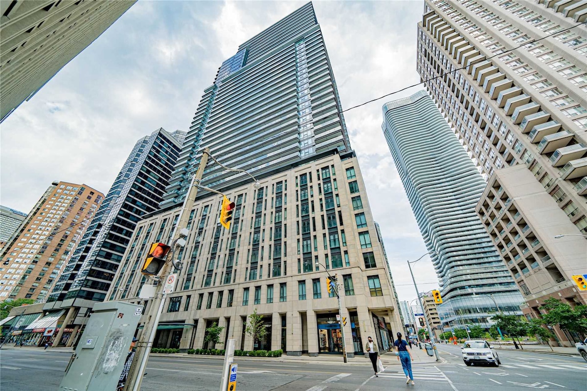 Immerse yourself in the vibrant heart of Toronto with this luxurious condo, perfectly situated at the iconic Yonge and Dundas Square. Enjoy unbeatable location, Step out your door and be instantly surrounded by world-class shopping, dining, and entertainment. Stunning Views: Take in breathtaking panoramic city views Modern Comfort: Relax in this stylishly furnished condo, featuring: Spacious Living Area, perfect for entertaining guests or unwinding after a day of exploring.