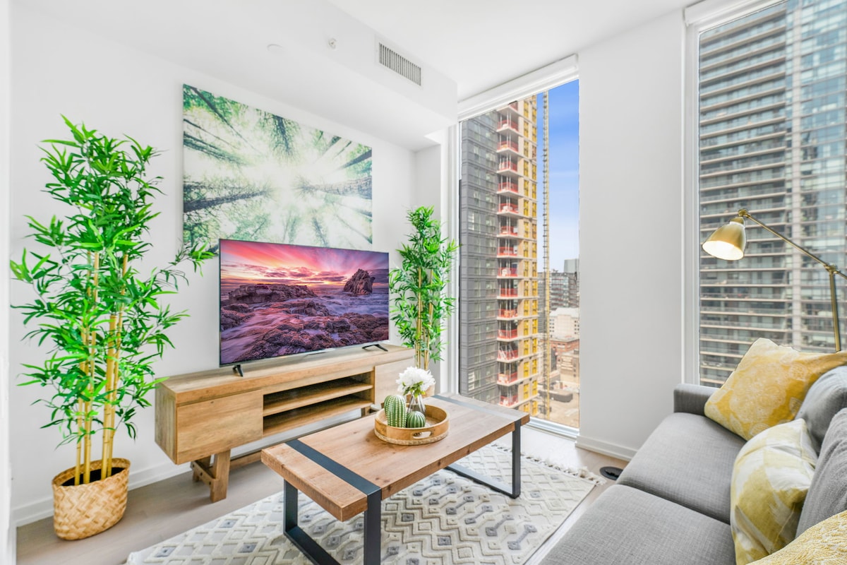 This boutique condo, in the heart of Toronto, is just steps from the city’s best restaurants, shops, bars, and live music venues. With easy access to Toronto’s Financial District, Discovery District/Hospital Row, AGO, Entertainment District, CN Tower, Ripley’s Aquarium, City Hall, home arenas for the Blue Jays, Leafs, and Raptors, everything you need is within reach. Ideal for business trips, relocations, couples getaways, or family vacations, this suite comfortably accommodates up to 4 guests.