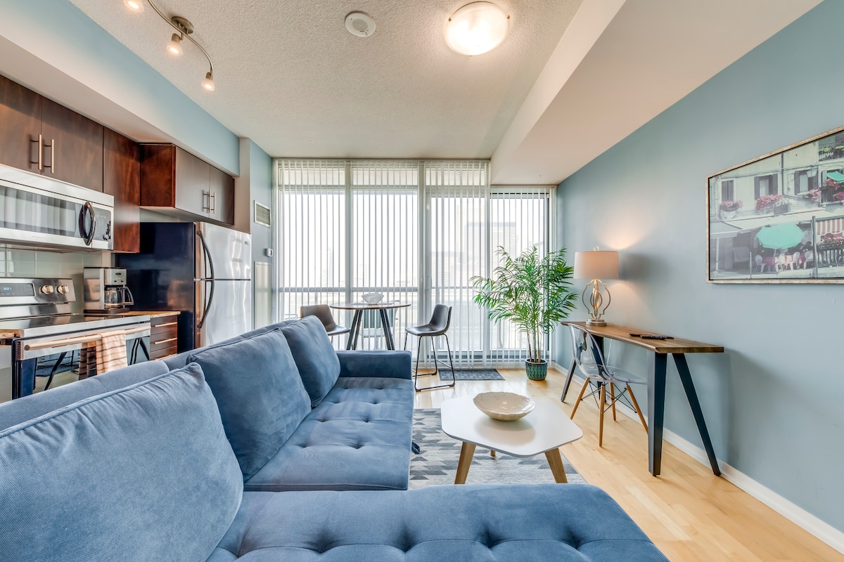 This boutique condo, in the heart of Toronto, is just steps from the city’s best restaurants, shops, bars, and live music venues. With easy access to Toronto’s Financial District, Discovery District/Hospital Row, AGO, Entertainment District, CN Tower, Ripley’s Aquarium, City Hall, home arenas for the Blue Jays, Leafs, and Raptors, everything you need is within reach. Ideal for business trips, relocations, couples getaways, or family vacations, this suite comfortably accommodates up to 4 guests.