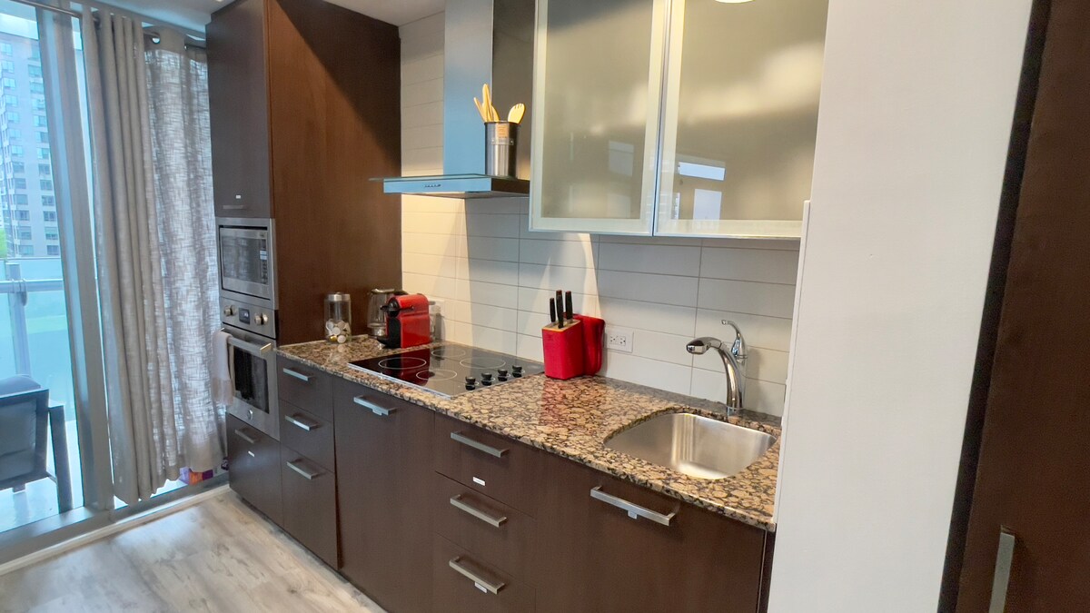 Enjoy a trendy and cozy experience at this centrally located condo. This 1 bedroom, 1 bathroom unit is located in the heart of the city within walking distance to many of Toronto's most popular restaurants, bars and tourist destinations. Steps away from King street, The Well and walking distance from the CN Tower, Rogers Centre, Ripley' s Aquarium and much more. The unit is equipped with high speed Wi-Fi with unlimited internet. You can also enjoy the gym and studio room.