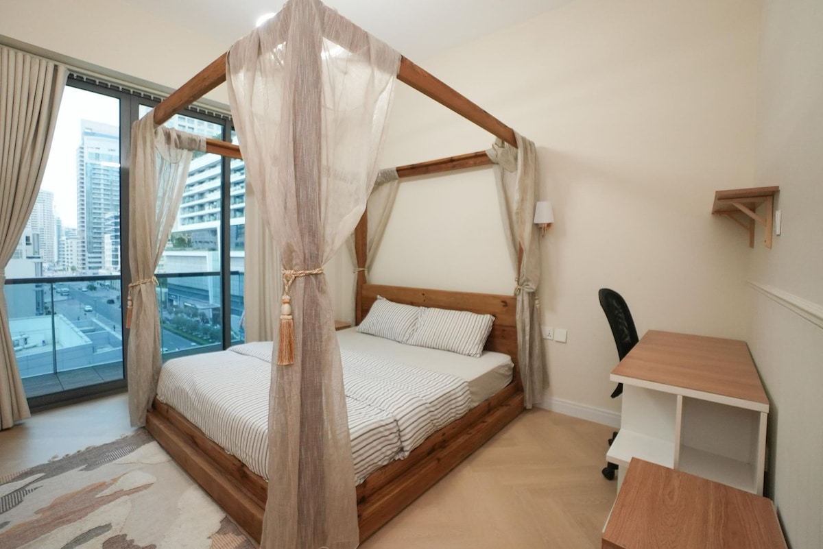 Inquire for our monthly rates! We offer premium, all-inclusive 1–3 month stays in this beautifully designed 1BR apartment, just 50m from the Dubai Creek Lagoon. Why stay with us? All-Inclusive: High-speed Wi-Fi, AC/Chiller, & utilities are fully covered. Family Ready: Includes a sofa bed for children and a baby cot. Prime Location: Quiet retreat next to Vida Hotel; 20 mins to DXB/Downtown. Amenities: Private beach and lagoon access plus 24/7 self-check-in. A hassle-free sanctuary for families a