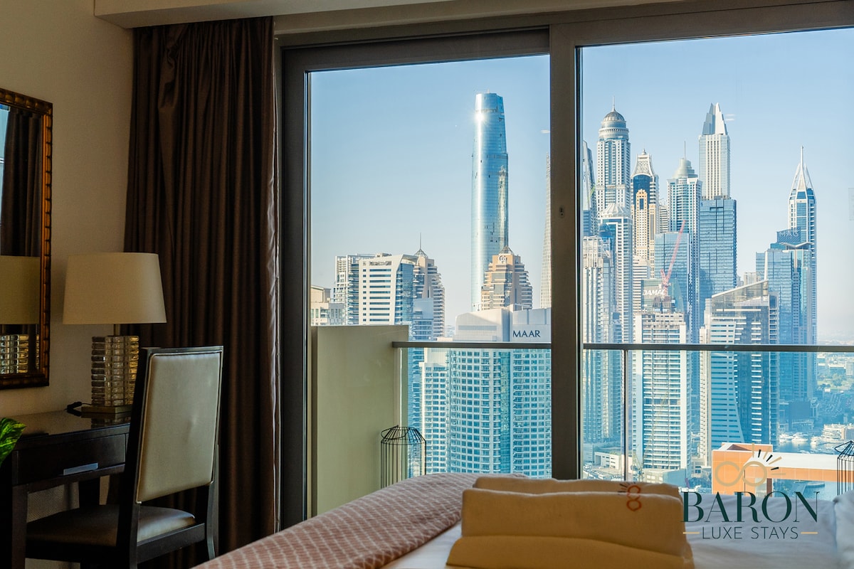 Safe & Fully Managed Stay at the best Address in Marina, located within JW Marriott Marina Hotel, with full access to the hotel's luxurious facilities. Enjoy the pool, gym, and world-class services, all while being directly connected to Marina Mall and easily accessible from Sheikh Zayed Road. The studio apartment boasts stunning city views, a king-size bed, spa-style bathroom, fully-equipped kitchen, TV, and a private balcony.