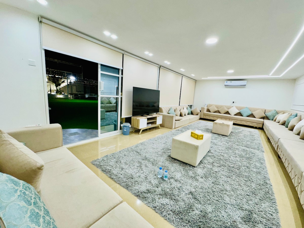 This charming villa offers a tranquil retreat in the heart of Fujairah, ideal for families or groups seeking comfort and privacy. The spacious living areas are complemented by a private garden and pool, perfect for leisurely afternoons. Guests can enjoy al fresco dining in the BBQ area or explore nearby attractions, or just relax in the pool with ocean view.