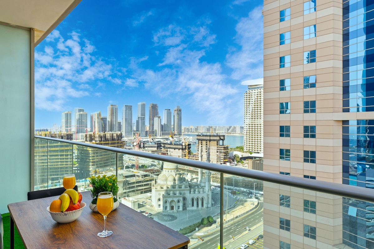 ✦ Modern 1BR on the 18th floor of DAMAC Heights in Dubai Marina with a king bed, double bed, sofa bed, 2 Smart TVs & big balcony with Marina, Panoramic sea & Palm Jumeirah views. ✦ On Dubai Marina Walk & Just 2-min near to Tram for easy city access. ✦ Enjoy premium amenities including a pool, gym, sauna, cinema room, kids’ play area & 24/7 security. ✦ Dine at Ritzi, sip coffee at Café Bateel, or grab essentials at Spinneys & Carrefour. ✦ Ideal for families, couples & business travellers.