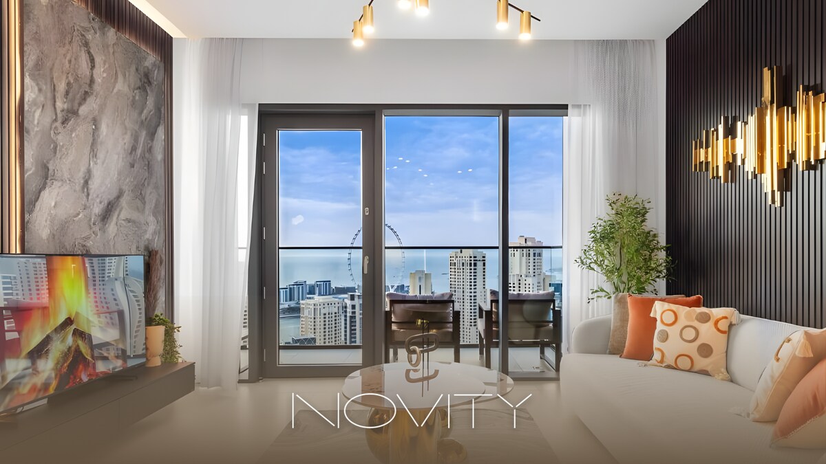 Indulge in luxury at this brand-new, ultra-modern apartment with full lake views and iconic sights of Ain Dubai. Located just 50 meters from the metro, you're only 5 minutes from the Marina and Marina Mall, and a 20-minute walk to the beach. Surrounded by restaurants, supermarkets, and pharmacies—all within a 5-minute walk. Peaceful and stylish, it comfortably hosts 4 guests, offering high-end finishes, private parking, and a truly convenient, upscale stay.