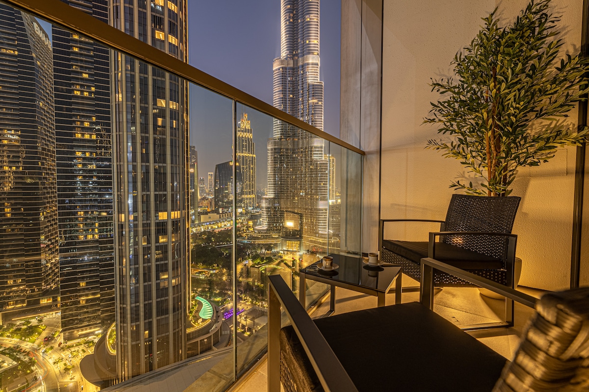 豪华2卧室,享有壮丽的哈利法塔和喷泉景观