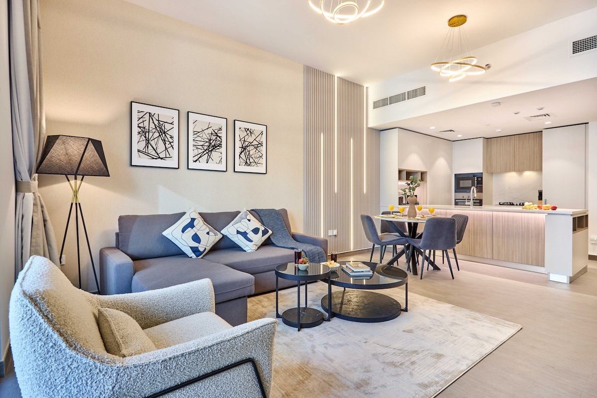 🔥🔥🔥 Hot Offer: We're currently offering 6% discount for 3+ nights stay, 15% discount for 7+ nights stay and 30% discount on 30+ nights stay. 🔥🔥🔥 This elegantly designed apartment featuring panoramic Dubai skyline views, stylish interiors, and thoughtful amenities including binoculars for closer views of iconic landmarks. Located in a peaceful community with easy access to Dubai's attractions, perfect for couples, families, solo adventurers, and business travellers.