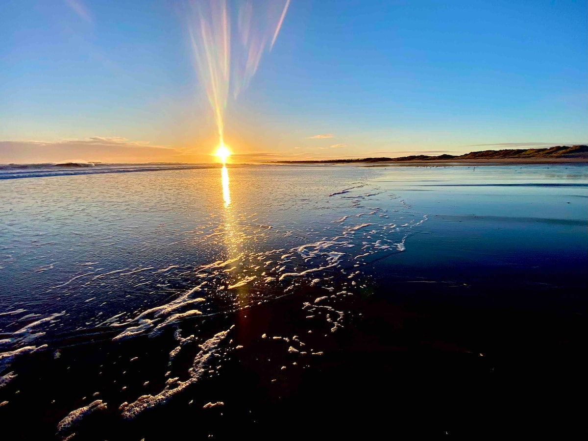 This beautiful beach house sits right by the sea with direct access to the enormous sandy beach and dunes. A great space to spread and out and relax with family and friends, it is stylishly furnished and decorated, and well equipped with everything you need! It is our family holiday house, so is comfortable and welcoming - a perfect spot for anyone who wants to getaway in a really special home from home! We can often be flexible on check-in and out times to make the most of your time by the sea!