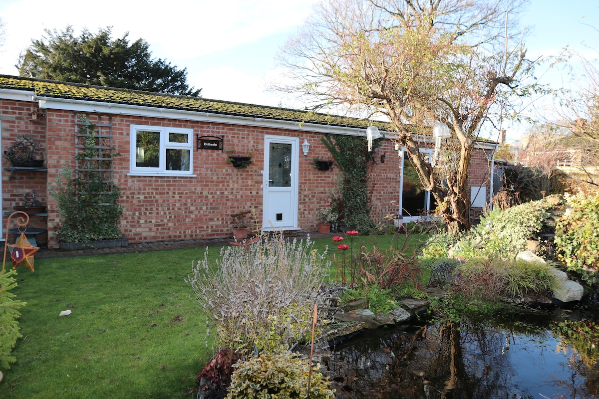 Relax in this calm peaceful bungalow set in our one and half acre garden with open views Kitchen has appliances Shower room Two bedrooms One single bed One 4ft bed ( small double) Good wardrobe space. WiFi and Alexa. Free view TV plus fire stick Fan Pool table Views to side and rear across Lincolnshire countryside. Fire pit Separate garden building which houses large hot tub overlooking fields and is private. Pub within walking distance. Local shops and butcher in next village, 20 minute walk