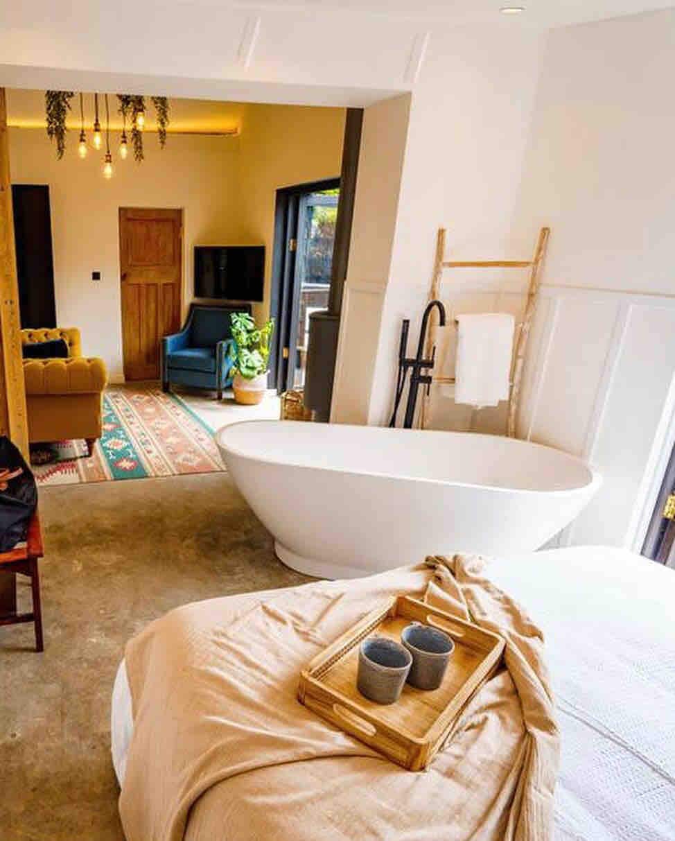 Yes, that is a hot tub in a Lotus Elan! On the outskirts of Medstead village, in the corner of a field where shire horses once roamed, you’ll find a tiny home like no other. Once hauled to and fro for Polo and Shire shows, The Horse Hut has been lovingly transformed into a luxury holiday stay—while maintaining its horsey heritage. Whether you're soaking in the Lotus Spa or sitting back on the verandah, take in the beautiful vista of the Hampshire countryside and Hattingley Valley.