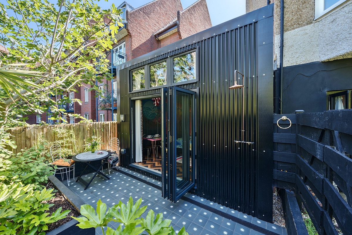 Private sauna, bath, garden studio and home cinema — hidden in central Brighton. An artist-designed retreat perfect for one, couples or friends. Ideal for cosy winter breaks, festival season or summer holidays. Relax in the private garden with sauna and outdoor shower, soak in the bath, then unwind with a cinema-style movie night using the projector and streaming services. Stylish interiors, king-size bed and thoughtful comforts throughout. Walk to the station, beach, shops and nightlife.