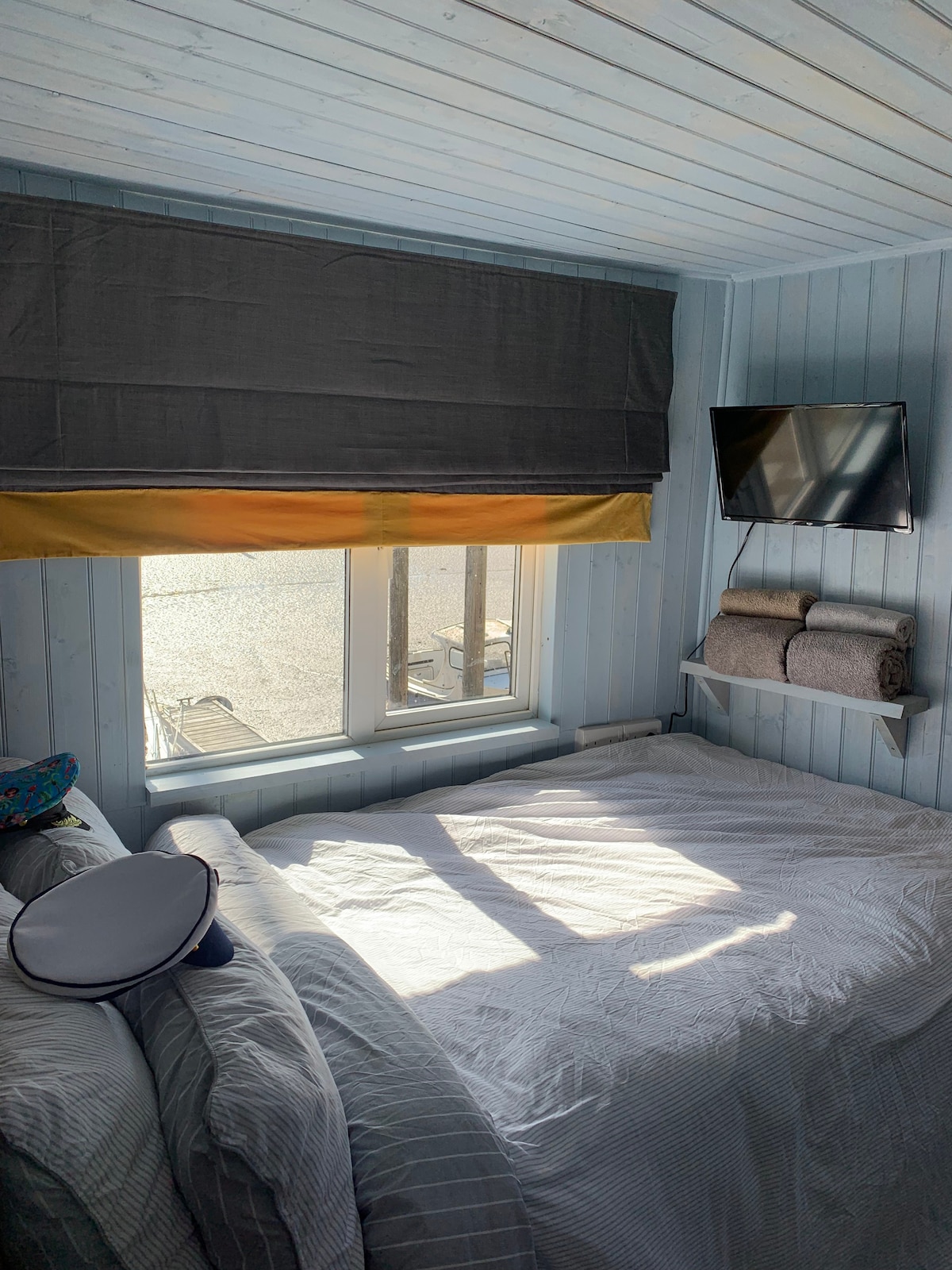 Floating home Kinsan- a rustic urban retreat that sits on Liverpool’s historic waterways, just minutes from all of the city's attractions. The organic wood studio was designed with generous proportions, simple finishes- keeping the boat airy, yet cosy. Panoramic windows flood the bow terrace & bedroom with natural light; offering stunning views across the water from the luxurious expanse of a 4 poster super king bed. The ideal bolt hole to explore the city of Liverpool.