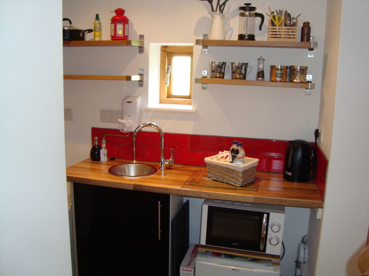A lovely self-contained studio with patio area and free parking. It contains a king bed, chair & work desk; kitchen with fridge, sink, hob and microwave and all necessary crockery and utensils etc; wardrobe, drawers; bathroom with good size shower; wifi TV and USB sockets; its own central heating and hot water systems and modern decor. Towels, tea-towels, soap, washing up liquid and bed linen provided along with some basic food items such as salt/pepper, teabags, coffee, sugar, squash, etc