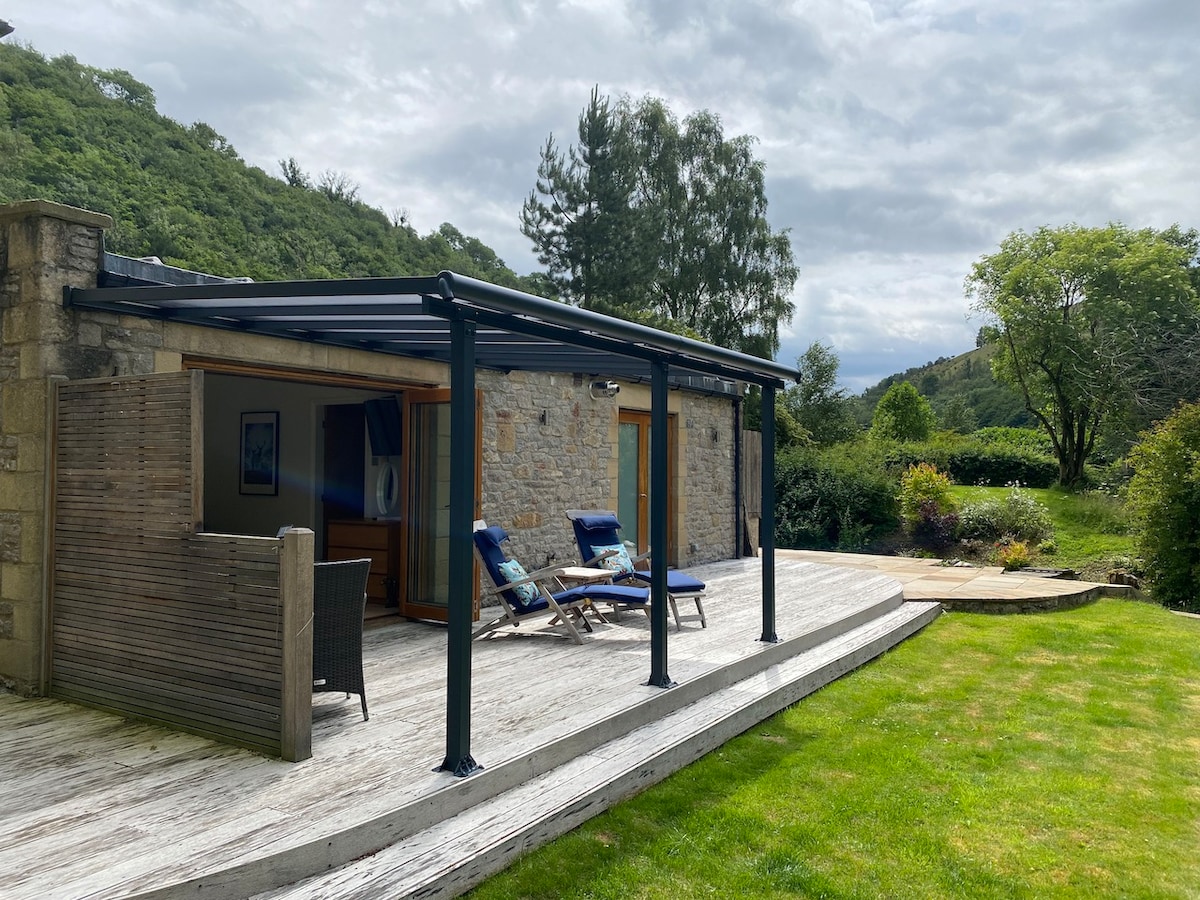 This comfortable studio with amazing views, lots of outdoor space, walks from the doorstep and pubs with good food nearby is perfect for couples looking to re-charge their batteries in a rural location. It has a well-equipped kitchen, including dishwasher, White Company linen, underfloor heating with independent controls, it's own combi-bolier for hot water, tv and wi-fi. It is on the edge of the Peak District with many local attractions, such as Chatsworth and Hardwick Hall.