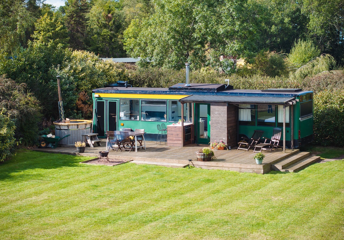 Lofty's - bespoke & fabulous! Skillfully hand crafted, delightfully cosy, with all the trappings of quirkiness & good design. Super-fast Wifi. Wood burner. Both bedrooms boast ensuites, each with a roll top bath & walk in shower; perfect for 2 couples. *If booked by just one couple, the 2nd bedroom will be closed Private patio. Outdoor dining. Covered hot tub shack with soft seating & firepit. 50 acres of private land Over 12 years & adults only