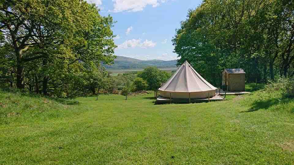 Discover our sumptuous Daisy bell tent in hidden corner of wild flower meadow. Full Furnished for comfort- 1 memory foam double bed& 2 single futons. Welcome hamper. Exclusive undercover kitchen dining area-fully equipped. Stove/bbq/utensils. Bedding& towels, extra blankets. Outside Incredible Mountain View/starry skies/Hikes. Relax by your Fire pit. Hot showers. Private eco loo. Fridge, freezer & phone charging. Water delivered to tent. Summer kids activities & weekly pizza night