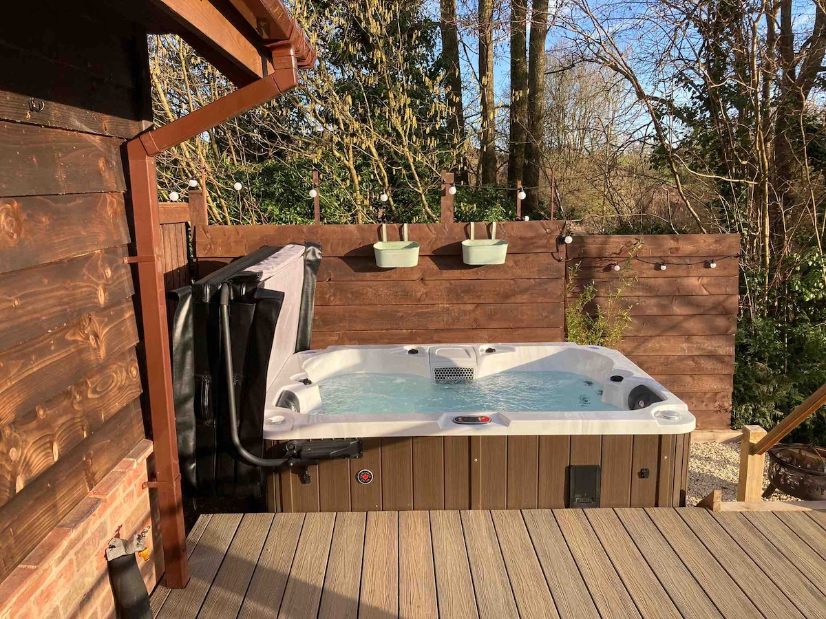 Take it easy at this unique and tranquil getaway. Located in the beautiful Teme Valley, you'll be perfectly placed to explore the stunning countryside. Very private with a cosy log burner, fire pit area and state of the art hot tub as well as a stunning bath to soak all your stresses away in. Relax in the reclining sofa to a movie on Netflix thanks to Sky TV with super fast broadband. A fully equipped kitchen including a dishwasher and bi fold doors straight onto the decking for the warmer days.