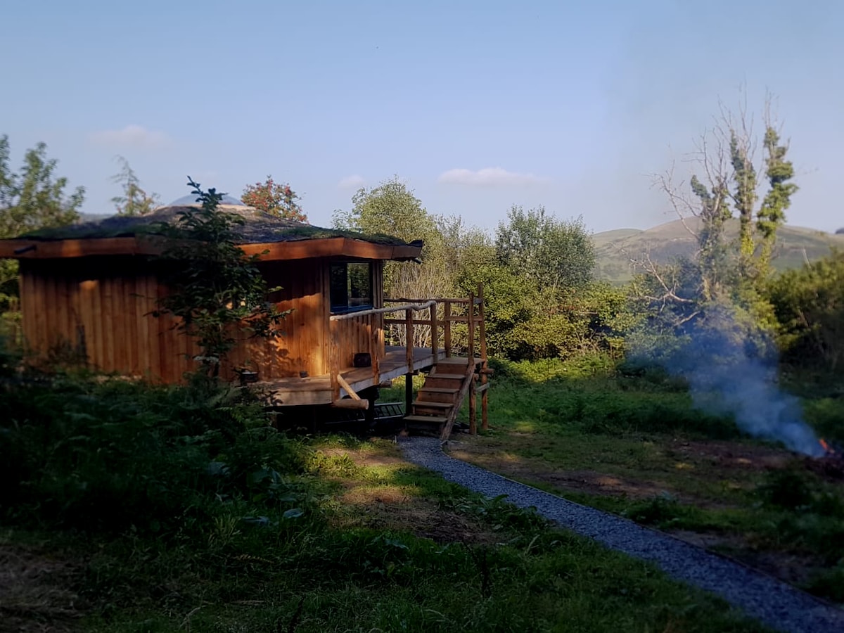 Follow the path through tall trees to find this utterly secluded eco roundhouse. Alone, as a couple or a family you may enjoy an unforgettable retreat in nature here in our homemade space, knowing all the while that the electricity is produced by micro-hydro and solar. Enjoy your private field of bluebells and the generous fire pit, hammock, perfectly dark night skies, birdsong, woodstove to keep it cosy, and the compost toilet and shower with a view. Walking distance from Dyfi Bike Park and CAT