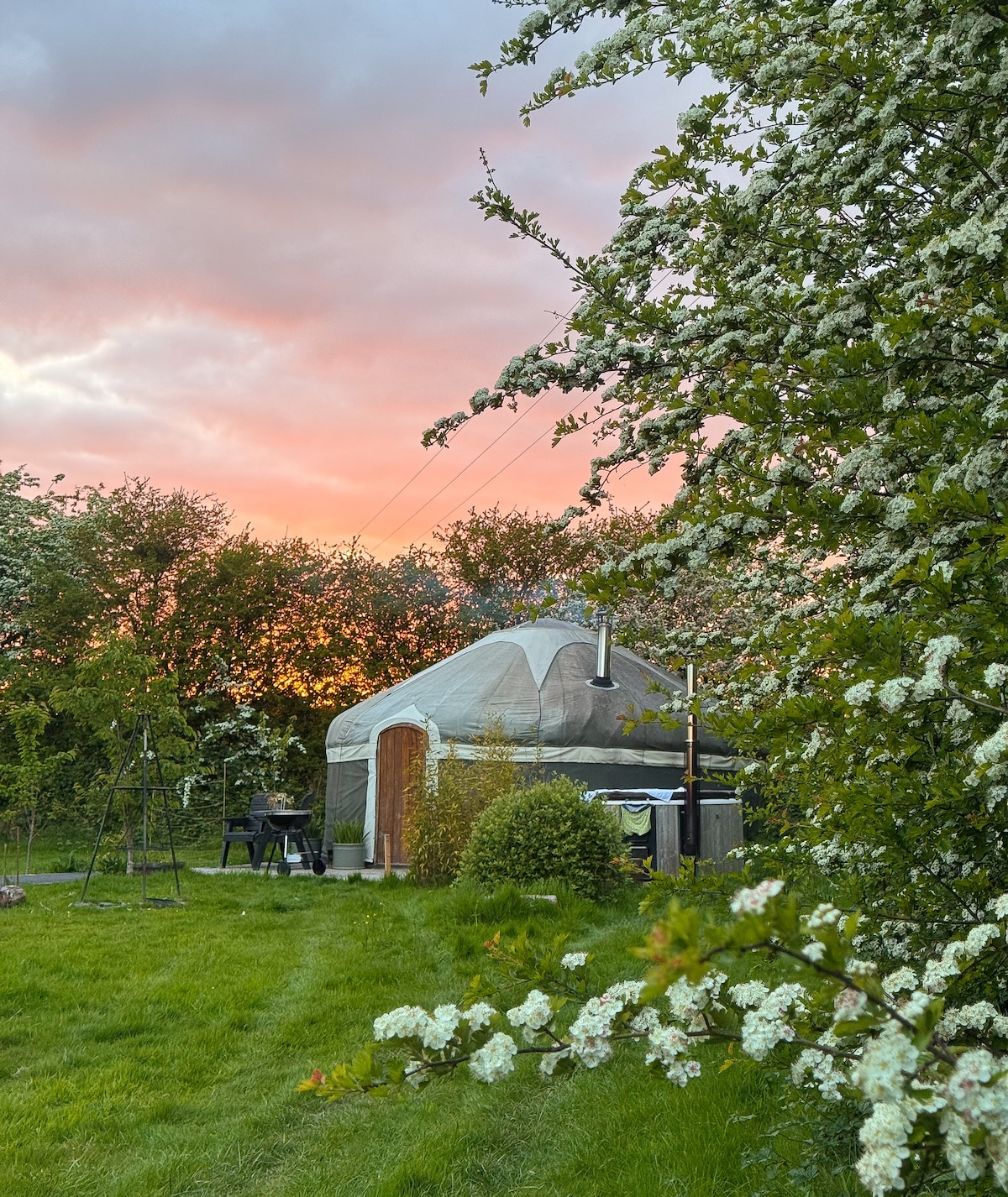 The Little Yurt Retreat is the ultimate getaway for couples and families! Enjoy a luxurious Mongolian yurt with a log burner, a cozy Tiny Home with a kitchen, SECRET CINEMA SNUG, shower and... OUTDOOR BATH; live the dream! Perfectly located in central Canterbury—just a 15-min stroll to the city center, a 10-min drive to the beach, or a short walk into the countryside. Fantastic in all seasons, especially winter! Relax, explore & enjoy a romantic escape with modern comforts while glamping.