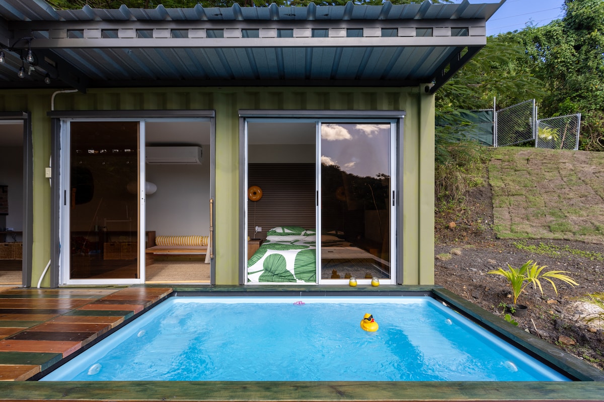 Welcome to Green Moon, your dreamy escape tucked deep in the woods. This custom-designed green container home blends minimalism and nature, complete with a private pool, outdoor seating, and stargazing under a moonlit sky. Whether you’re celebrating love, escaping the city, or just need a peaceful reset — Green Moon is your portal.