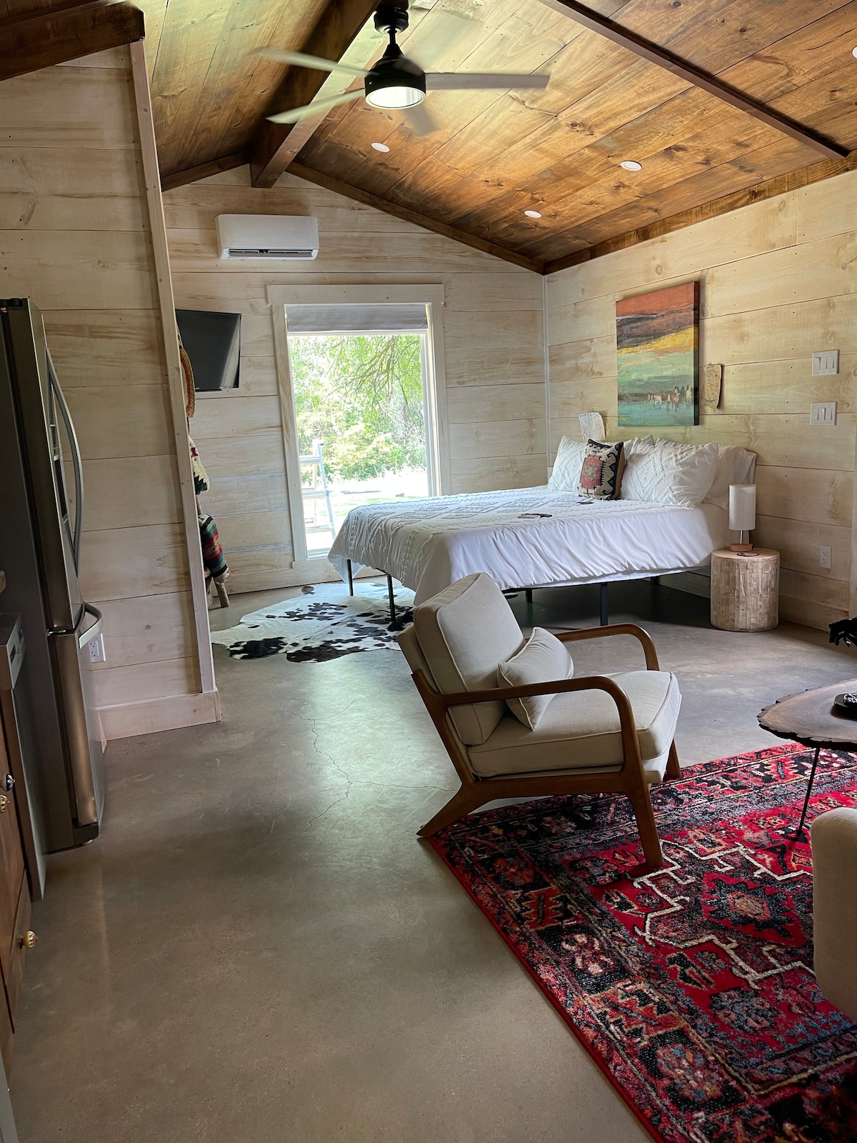 Near the heart of NWA, the Running Spring Retreat is a 700 square-foot A-frame cabin blending minimalist design with cozy comfort. Inside, guest will find themselves in an open concept living area featuring 16 foot ceilings and floor to ceiling windows. Outside, guest will find themselves surrounded by 70 acres of forest, while being only a short drive from boating on Beaver Lake, wandering Crystal, Bridges Museum, or at the head of an Ozark MTB trail NOTE: 2 free range GSP dogs live on site