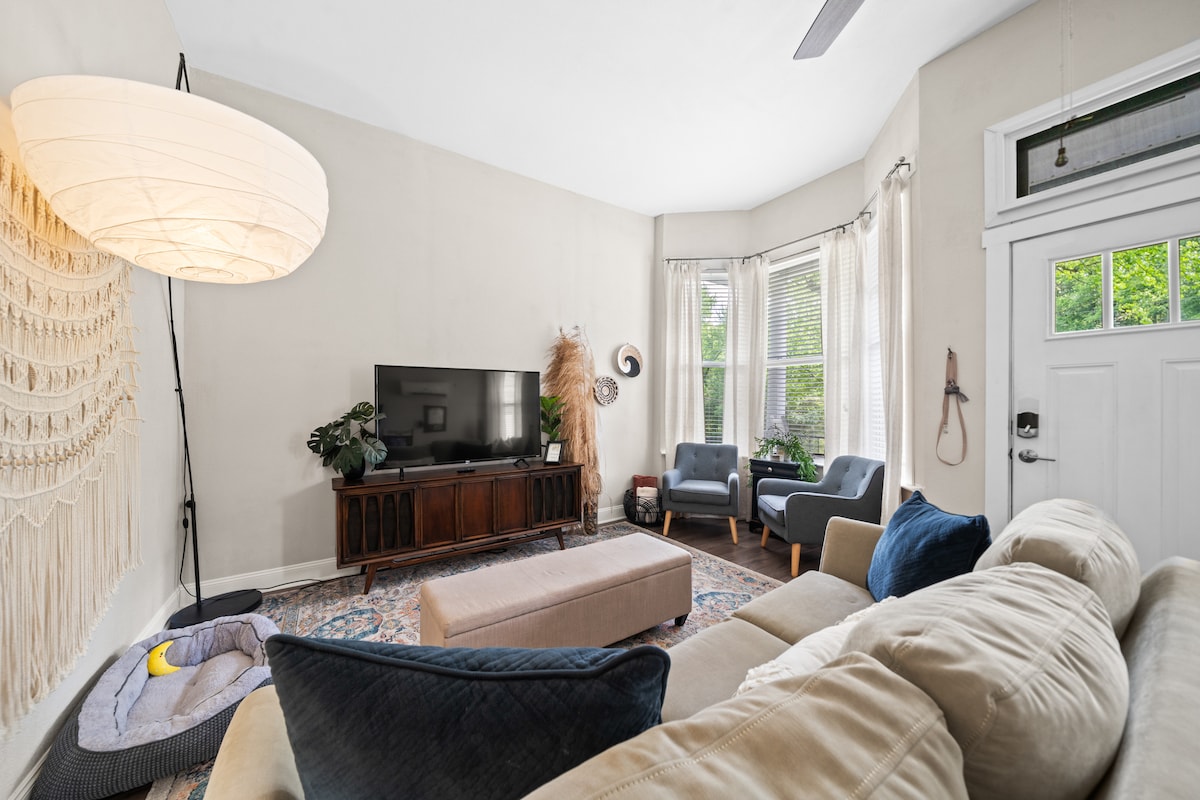 State of the Art 600 Square ft. Studio Apt. with 65” UHD TV synced with Hue lighting, HomePods and Apple TV. Coddle Switch convertible queen size couch, individual climate control, Pelaton bike, and Type 2 EV charger. The Bungalow with vaulted ceilings, hardwood floor, full kitchen, bedroom, bath and wash/dryer is private and cozy with constant five star reviews 1 block from Dixon Street. Pet friendly- enclosed fencing around our 1/2 acre park like yard. 24 hour security by Arlo