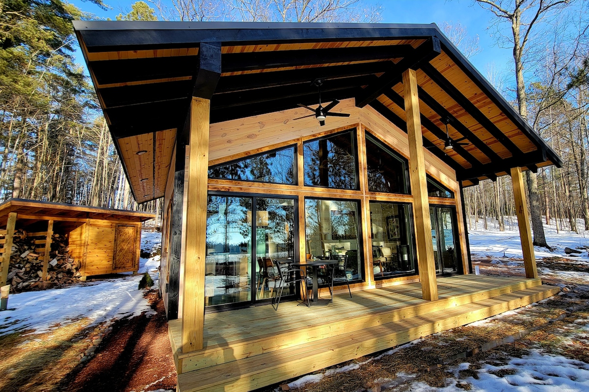 Built as a winter or summer escape for a couple or small group, this beautiful four season cabin is a great way to experience the Northwoods of Wisconsin in a modern, well-appointed, aesthetically rich space designed with relaxation in mind. Cabin is brand new as of January 2024. Host is 14 year "superhost" This is a default "no pets" cabin, however certain sizes and breeds are allowed by permission only. We have a NEMA 15-40R outlet for level 2 EV charging. You bring chord and adapter