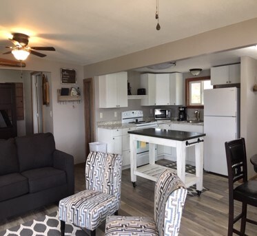 This cozy cottage in the woods (completed in June 2017) is perfect for a couple seeking a romantic getaway, enjoying a honeymoon, or celebrating an anniversary. (The sofa is a full convertible bed, if others plan to share the 400+ sq. ft. space.) Located in the Lake Hill (formerly Shadow Lake) Golf Course neighborhood (course is currently closed) about a mile from the NW shores of beautiful Pomme de Terre Lake, and about 6 miles south of Lucas Oil Speedway.