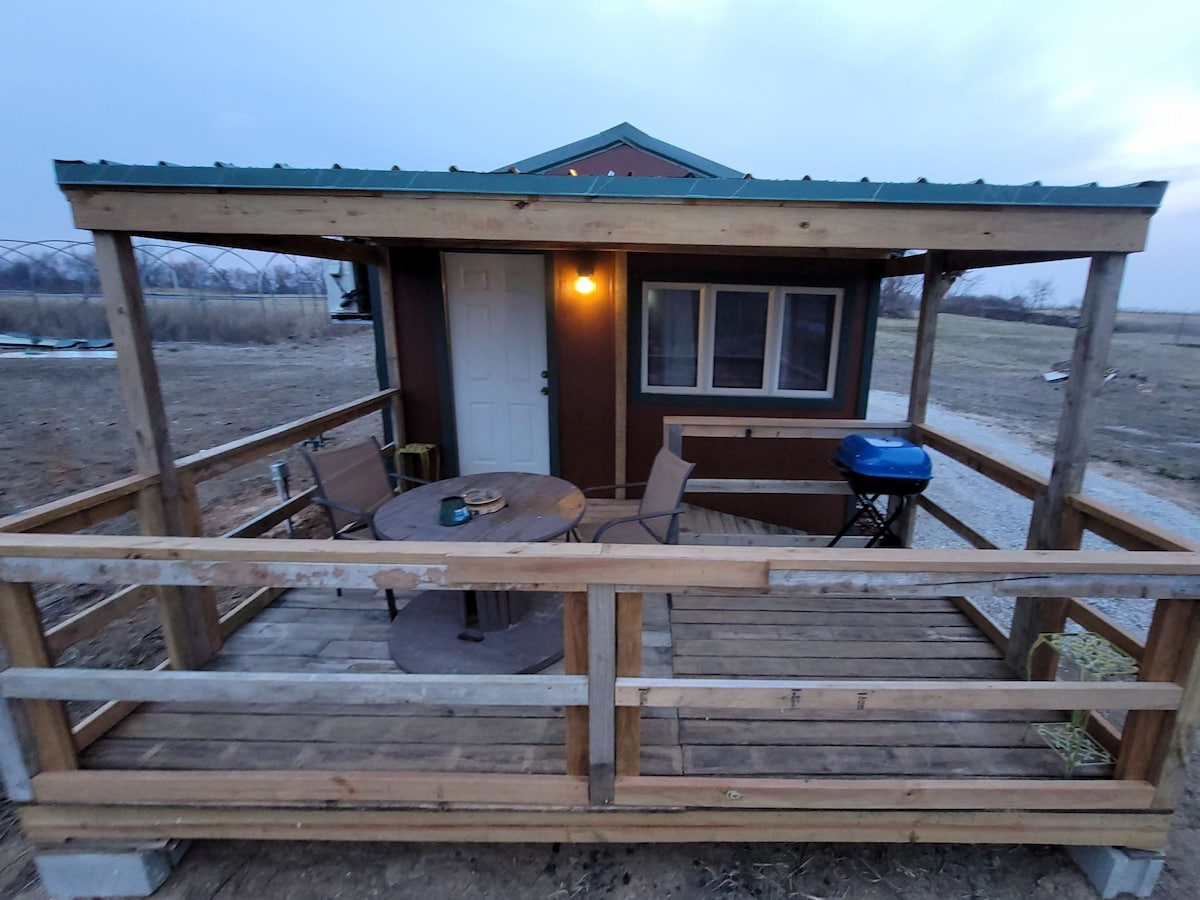 Feel refreshed when you stay in this rustic gem. Just looking for a place in the Midwest to get away from it all? Enjoy rural Kansas and country living. The peace and quiet of this unique retreat give rest to your body and soul only. Step into a relaxing, nature filled farming oasis. This private cabin sets beside fields of dreams to make this the perfect spot to get away . Feel free to bring your 4-legged Friends.