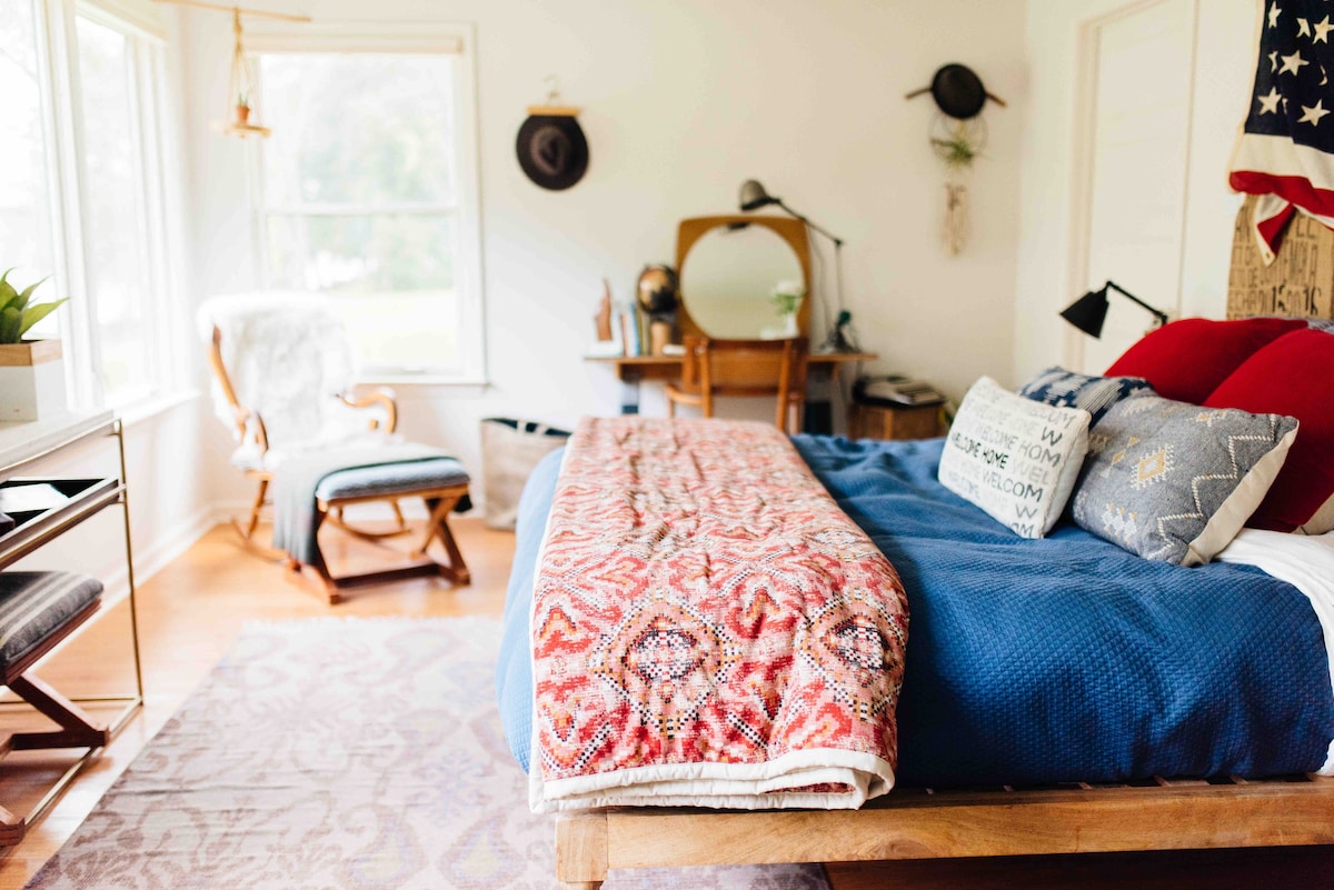 Welcome to the Falk House! Listed on the National Register of Historic Places by the US Department of the Interior, the Falk House is a treasure of mid-century modern design. We've transformed the original art studio into a stylish, private oasis, with expansive views of nature and Eastover’s Upper Twin Lake. You will be central to all metro destinations, including amazing restaurants, bars, and shopping, as well as area hospitals, courts, and businesses. Long stays ideal.