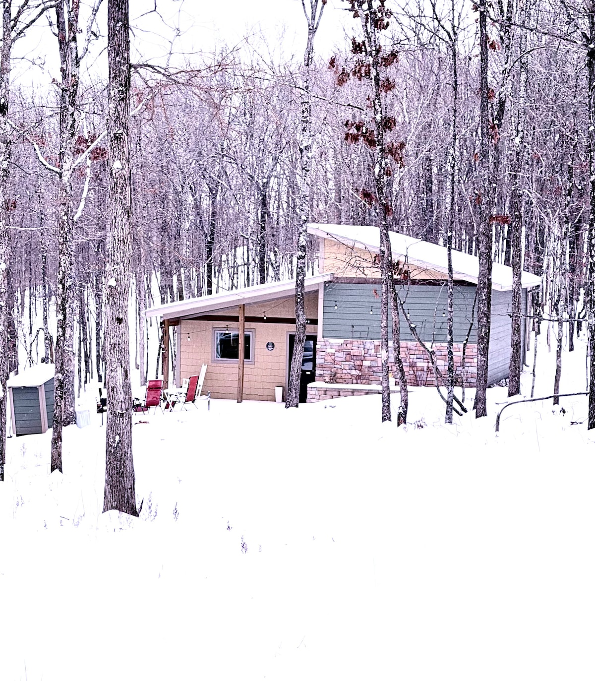 "The Fox Den" was designed just for couples...curling up by the fireplace or soaking in a hot tub in a screened-in porch, this unique 70's themed cabin in the woods, away from the stressors and noise of everyday life. Whether you're celebrating or just looking for an excuse to come for seclusion and quiet, the fox den is the ideal place to book for your romantic getaway, located 2 hrs. south of St Louis near Wappapello Lake. Breakfast items provided for guests to cook, including farm fresh eggs