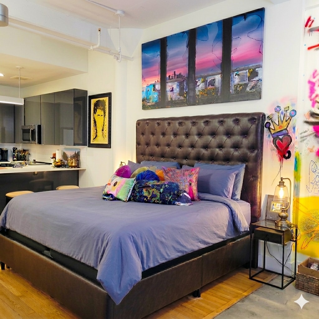 A spacious 3 story walk-up loft - a crash pad designed with raw Detroit bones and filled in Eldorado finds. This historic 1870s brick flat iron building sits at the corner of Old Tiger Stadium in the heart of Corktown, Detroit's Oldest Neighborhood. You're steps away from acclaimed restaurants, shops, cafes, speakeasies, breweries & distilleries & 1/2 mile to downtown. Exposed walls & ceiling beams, Moroccan rugs, 1970s weavings and mid century furniture make it a chic oasis in a bustling city.