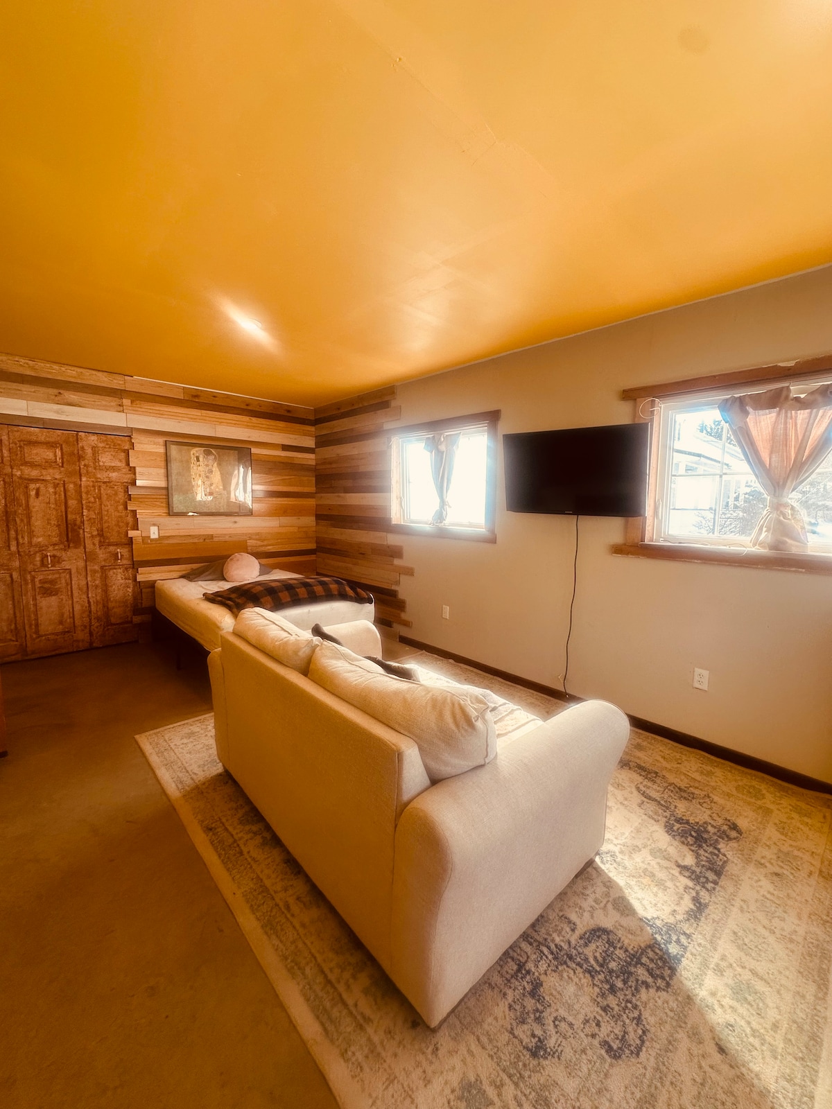 Truly one of a kind Historic property converted into a spacious, cozy loft in the heart of South KC. This 100-year-old space(5 min from HS Truman farm. He spoke on this stage on his first political campaign) has been completely rennovated with concrete countertops, beautifully vaulted ceilings, huge bathroom, built in workspace and even a fun kid's room. Let the natural light pour through the massive windows or close the curtains and dim the lights:) We hope you enjoy it as much as us!