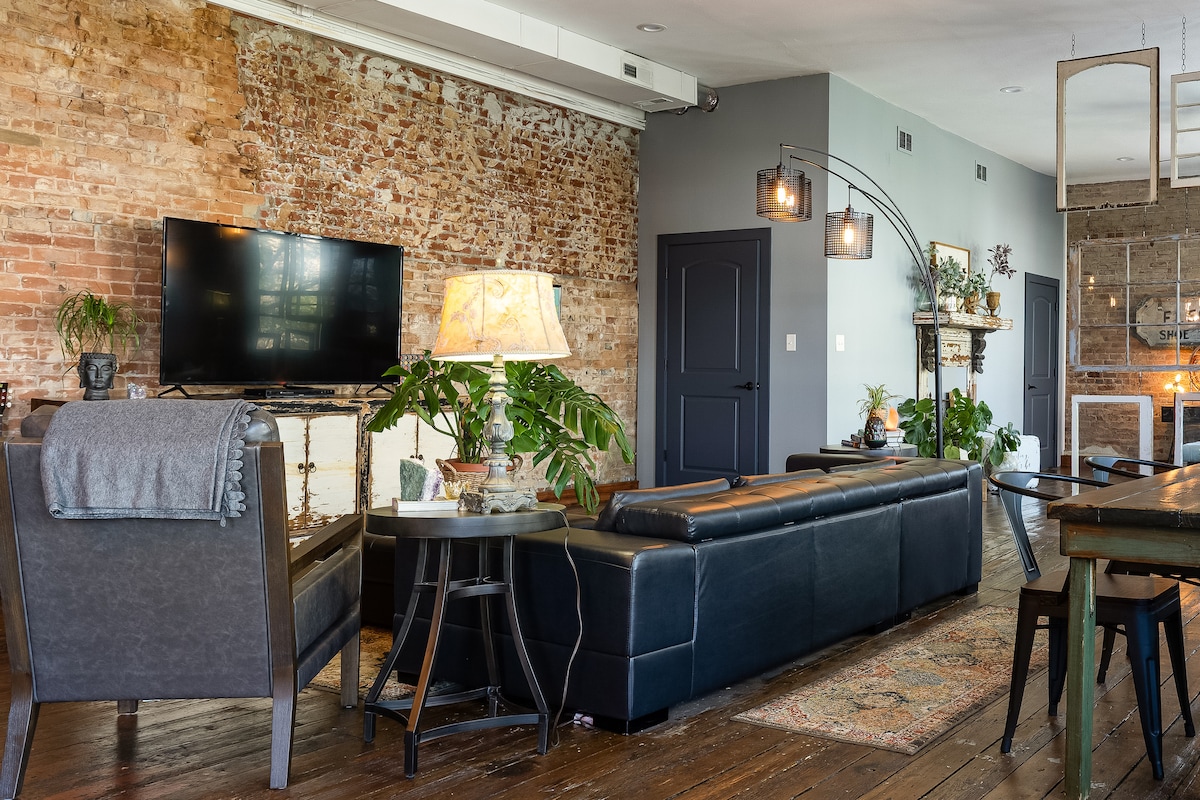 Renovated, clean, modern loft apartment in a 1920 fire station. Soaring ceilings, wood floors, brick walls, huge windows - lots of character! You'll be staying right where firemen lived 100 years ago. Easy access to everything — fantastic local restaurants, Whole Foods, downtown, the riverfront, the aquarium, parks and Stringer's Ridge are all walking distance. Our guests have said: "Coolest loft this side of the cosmos" and "I felt like I was living inside my Pinterest board."