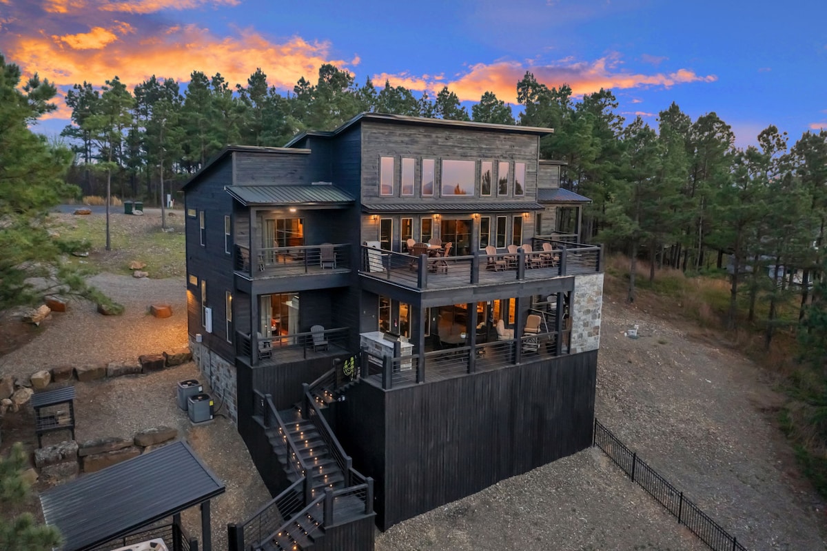 WOW... This will be the first thought that enters your head when you step foot through the door of our one-of-a- kind cabin. Professionally designed from the ground up, this cabin features the following: - Main Cabin has three bedrooms, two bathrooms, and upstairs loft with six bunk beds that sleeps 12. - Detached garage has an arcade and game room. - Above the garage is a private studio with it's own kitchen, bathroom, king bed, and laundry that sleeps two (additional $97 charge for this).