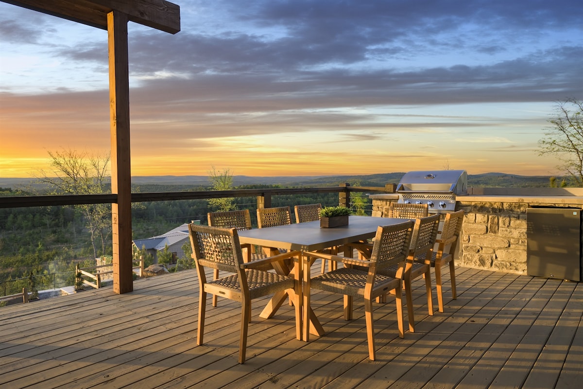 ✦ THE PHOENIX ✦ • True High-end luxury cabin on 3 secluded wooded acres • Sleeps 12 comfortably: 3 private king suites + stylish bunk room • 4 spa bathrooms with oversized marble showers • Private Pickleball Court nestled in the pines • Modern Game Room with Ping-pong • Spacious Heated Decks with Hot Tub • Fire Pit for s'mores, stories, and stargazing • Dual Gas Fireplaces (indoor + outdoor) for cozy vibes year-round