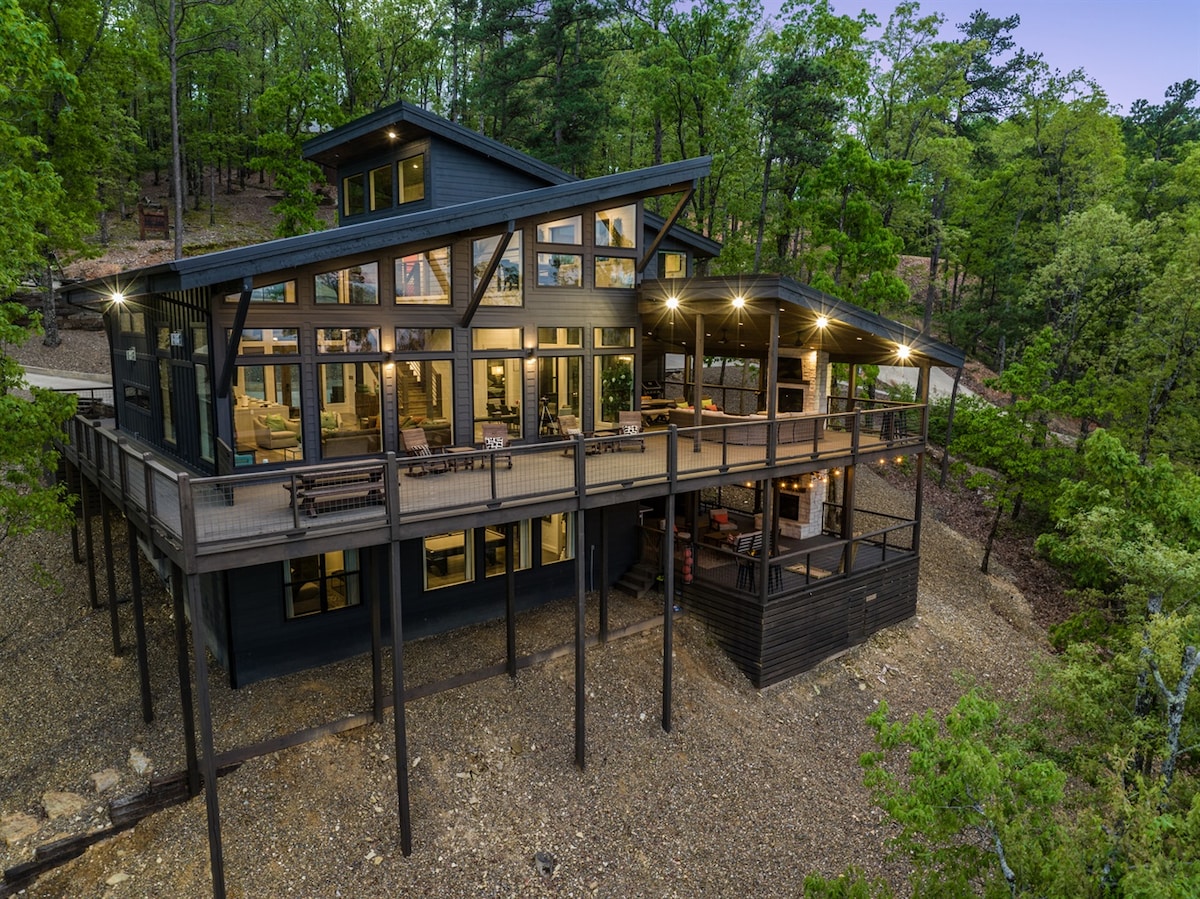 *Wide open floor plan so your group is "together," but not tripping all over each other *A total of 6 bedrooms, one of which is an oversized Bunk Room that sleeps 14 *The other 5 bedrooms have King-Sized beds and full bathrooms *The upstairs bedrooms have a balcony, providing spectacular views of the Oklahoma mountains and forest *Humongous deck with slide and climbing wall attached *Also on the deck is a kitchen with built-in gas grill and 8-person hot tub *Amazing Game Room *Upstairs Loft