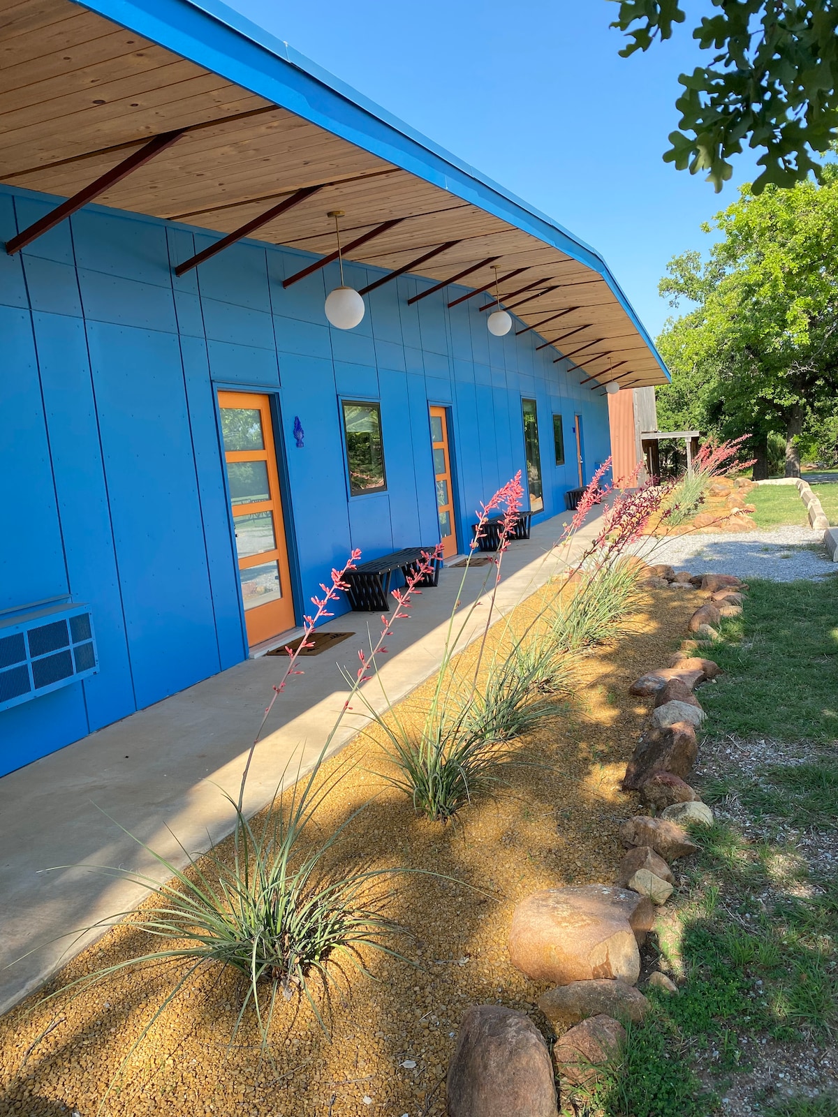 Come stay in boutique hotel style in Mid Century Modern inspired accommodations. Private key code entry makes check in easy. The Wichita Mod Lodge, owned by Oklahoma artist, Marilyn Artus, is just minutes from the Wichita Mountain Wildlife Refuge. If you love hiking there are many places to discover. Just behind the lodge are the Lawtonka trails. No need to even get in your car to go on a beautiful hike. There are lakes near by and the charming cobblestone community of Medicine Park.
