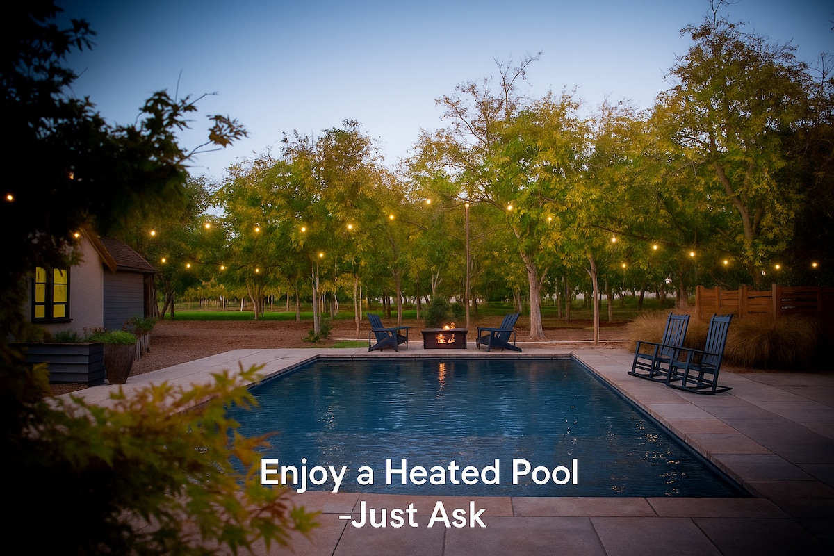 A very magical place we call home. Nestled in the middle of 20 acres of established walnut trees, lies your new favorite getaway! You can simply sit back and chill in the beautiful Orchard House or come outside and enjoy the patio/pool/barbecue/ fire pit and spa. One of the bedrooms listed is upstairs in a gaming tower, filled with entertainment options!! Also if you love animals as much as we do, you can help feed our furry and feathered friends .Either way....Prepare to fall in love!