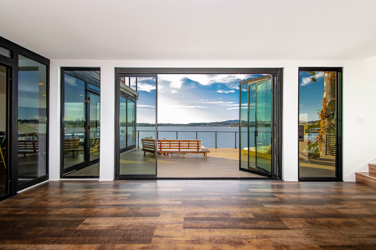 A modern shipping container home that is so close to the water you feel like you're on it. With floor to ceiling windows and two beautifully designed decks you'll feel like you're in the Caribbean. Every inch of the space is curated to appreciate what is so wonderful about Hot Springs all while being 10 minutes from the casino and 15 from downtown. Enjoy your coffee on the lower deck and margaritas on the upper deck while watching the sun rise and set.