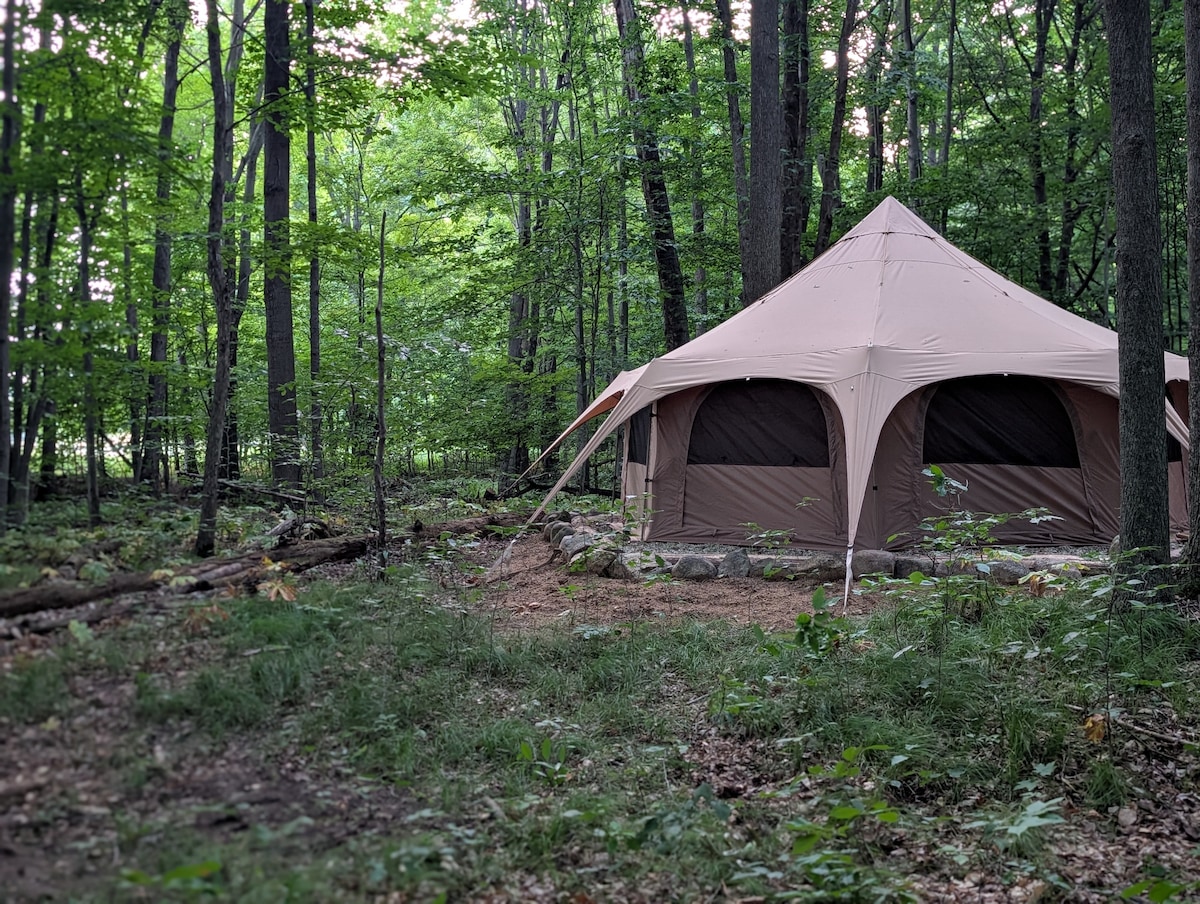 Relax in a secluded and cozy glam-camp for two on 16 wooded acres just 3 miles from downtown Hot Springs National Park! Prepare full meals in a well-equipped woodland kitchen. Hike or bike private onsite trails. Enjoy a crackling fire against the mountain sunset. Star gaze from the 2-person hammock, and sleep soundly in a real queen bed in a heated canvas tent. CONTINUE READING for important details