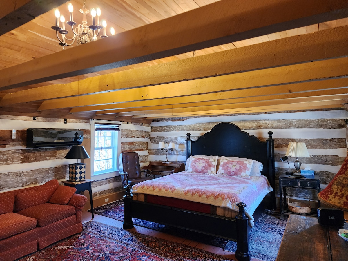Welcome to our renovated 1832 Log Cabin on the grounds of the George William Washington and Sarah Wright Washington 19th century plantation. The cabin was the first structure built. Then came barns and slaves’ quarters (no longer standing). The dairy barn is now a woodworking shop and the bank barn was recently restored. The main house, built in 1835, is Greek Revival style. Today, our 300+acre is Certified Organic. We border the South Branch of the Potomac River. It’s ALMOST HEAVEN !