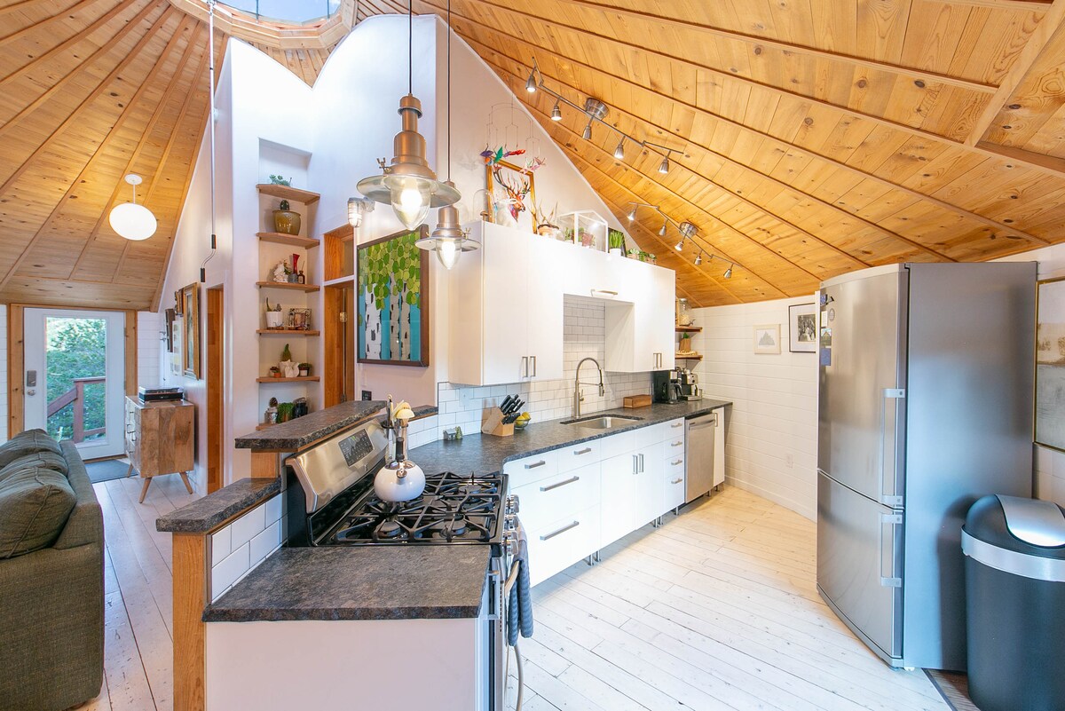 A charming, stylish 20’ yurt in the woods on our small, off-the-grid goat farm! If you are looking to get away from it all (and still be close to SO much) - this is the place for you! Enjoy a nap in the hammock, s’mores around a campfire, a great night’s sleep under the stars, a country breakfast delivered to your door - and goats! Take a walk in the woods...enjoy the artistic landscaping...try goat yoga! Or, experience some of the area’s AMAZING food, beverages, shopping, and attractions!