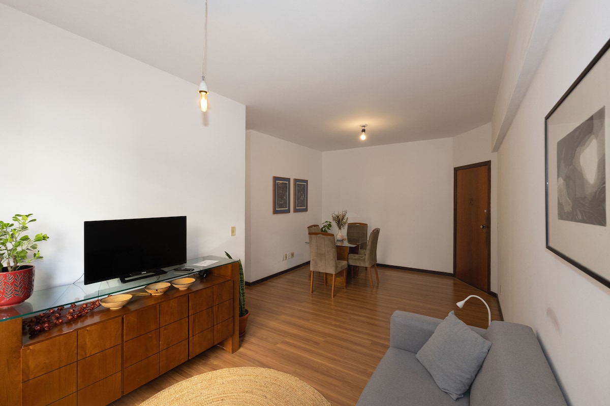 Dois quartos com conforto no centro de BH, divisa com o bairro de Lourdes, perto de tudo. - 30 m do Supermercado Supernosso Momento - 120m do Minascentro - 300 m do Mercado Central (1 quarteirão) - 400 m do Shopping Cidade - 400 m da Igreja Universal do Reino de Deus - 750 m do Mercado Novo (point de BH) - 800 m da Avenida Afonso Pena e 1,3 km da rodoviária - 900 m da Feira Hippie, na Av. Afonso Pena - 1 km da Praça da Liberdade - 1,3 km do Minas Tênis Clube I - 1,5 km da Praça da Savassi